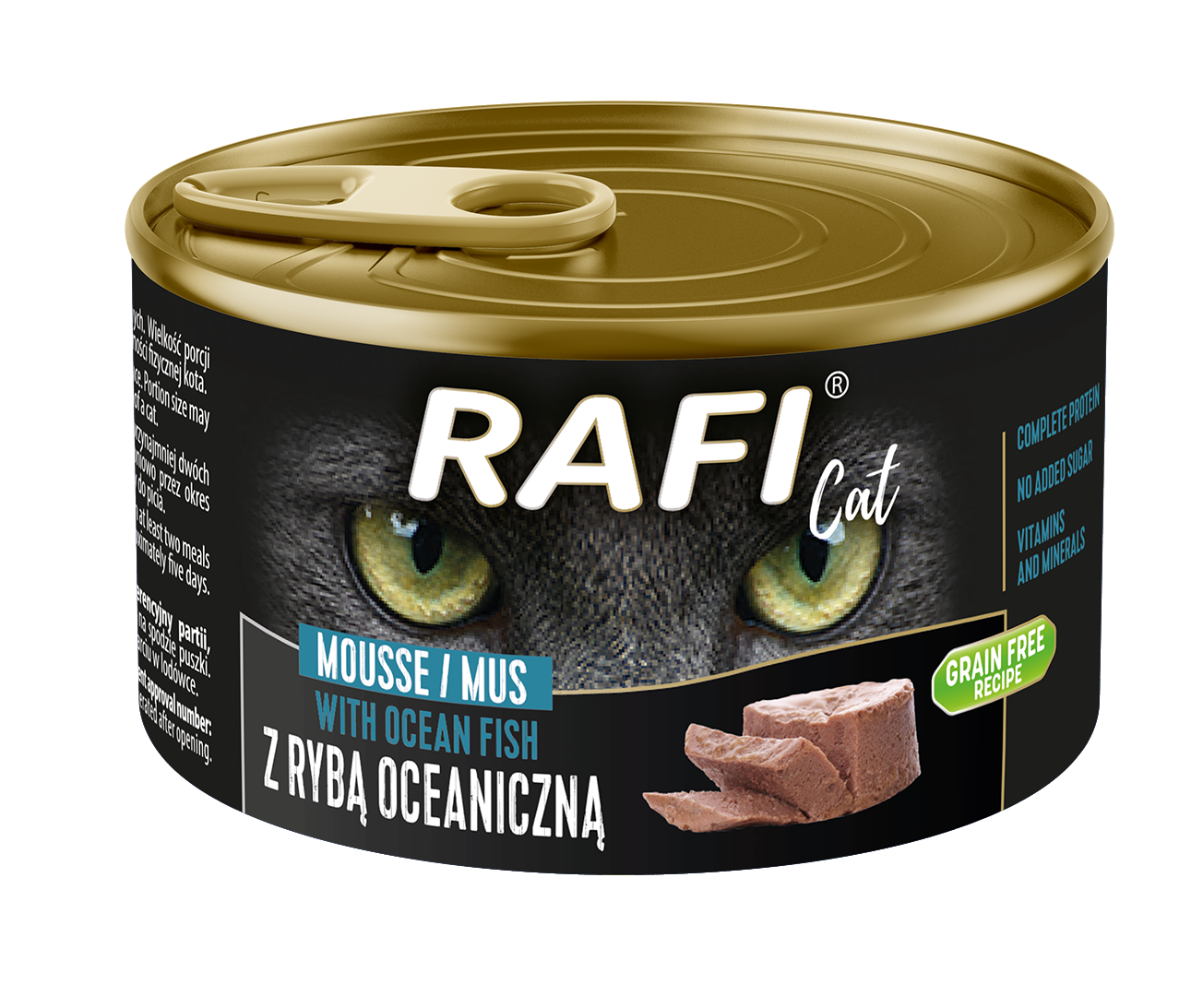 Pełnoporcjowa karma z rybą oceaniczną dla dorosłych kotów wszystkich ras Rafi MUS w pełni zaspokaja ich zapotrzebowanie na niezbędne składniki odżywcze. Jej prosty, a jednocześnie wartościowy skład dostarcza białka i tłuszczu o wysokiej przyswajalności, wspierając zdrowie i witalność zwierzęcia. Surowce rybne są źródłem kwasów tłuszczowych omega-3 oraz wysokiej jakości białka, które odgrywają kluczową rolę w diecie kota na każdym etapie jego życia. Odpowiednia struktura karmy poprawia strawność i smakowitość, co sprawia, że jest chętnie spożywana przez koty. Dodatek tauryny odpowiada na specyficzne potrzeby metaboliczne organizmu. Precyzyjnie dobrane składniki mineralne zapewniają optymalny stosunek wapnia do fosforu, wspierając prawidłowe funkcjonowanie układów kostnego, mięśniowego i wydalniczego. Dzięki mało inwazyjnej metodzie produkcji oraz starannej selekcji surowców, karma jest lekkostrawna i doskonale dostosowana do wymagań żywieniowych dorosłych kotów.