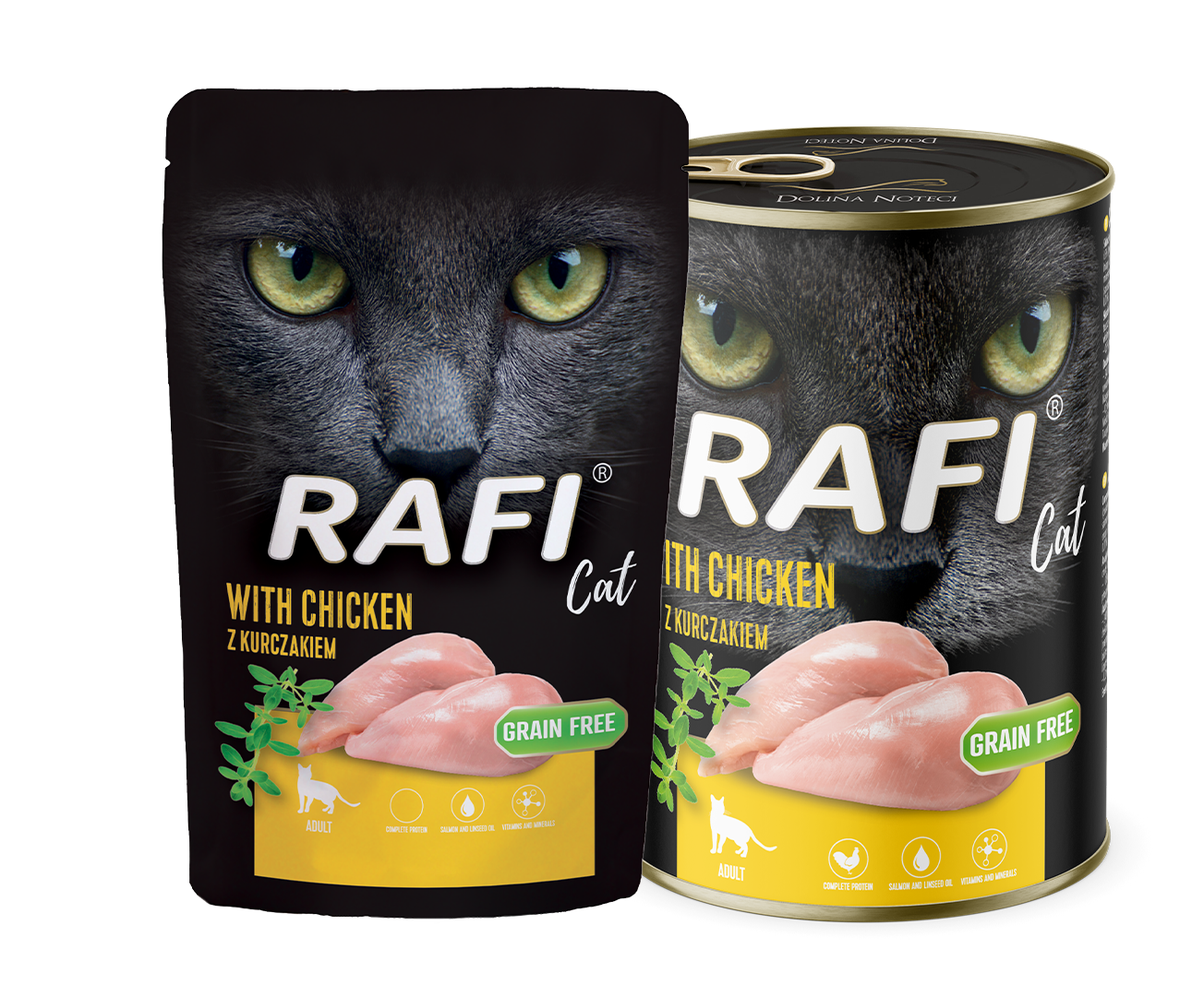 Karma Rafi Cat to pełnoporcjowy produkt o odpowiednio skomponowanym składzie, który spełnia wszystkie specyficzne wymagania żywieniowe kotów – mięsożerców. Najważniejszym walorem karmy jest wysoka ilość mięsa i produktów pochodzenia zwierzęcego, stanowiące cenne źródło pełnowartościowego białka. Dostarczają również tłuszcz oraz kwas arachidonowy, niezbędny do prawidłowego funkcjonowania organizmu kota. Dodatkowo mięso i produkty pochodzenia zwierzęcego, olej lniany, olej z łososia, bilansują dietę kota w wielonienasycone kwasy tłuszczowe, zarówno te z rodziny n-3, jak i n- 6. Dodatek do karm tauryny spełnia niezbędny wymóg pokrywając zapotrzebowanie kota na ten aminokwas, dzięki czemu proces trawienia tłuszczy i białek zachodzi w sposób prawidłowy. Odpowiedni stosunek wapnia do fosforu przyczynia się do utrzymania homeostazy tych pierwiastków w organizmie i mineralizacji kości na stałym poziomie. Jod zapewnia prawidłowy przebieg procesów metabolicznych wszystkich składników odżywczych.