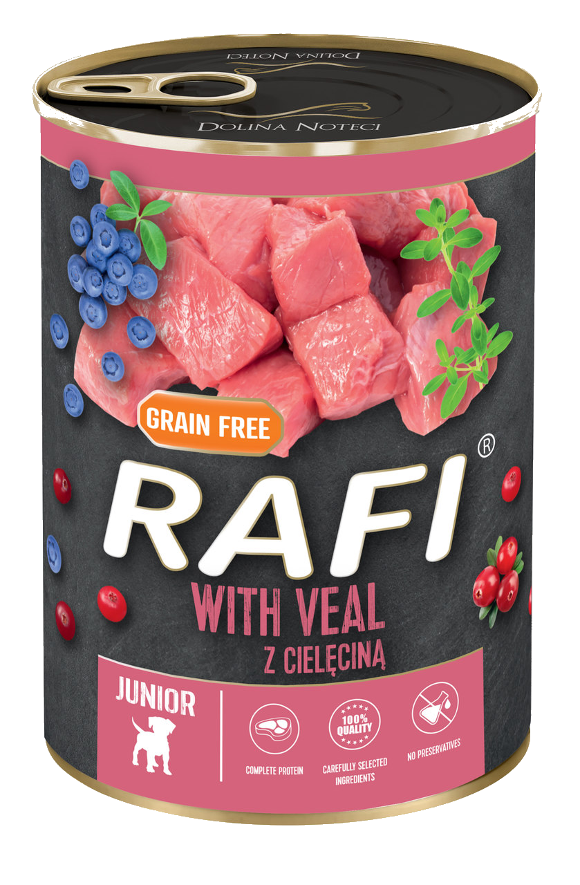 Mokra karma Rafi Junior z cielęciną zawiera: